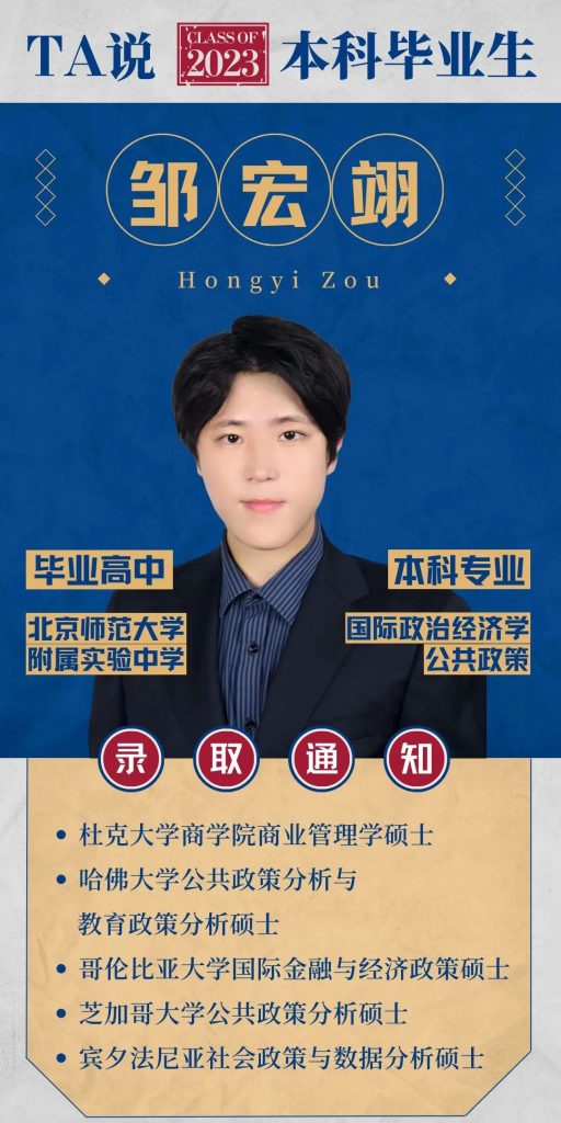 I plan to pursue a master’s degree in international finance and economic policy at Columbia University. After graduation, I will engage in related work of strategic consulting, providing strategic optimization and solutions for problems encountered by governments and enterprises. In the long run, I hope to work as a consultant in international financial organizations such as the World Bank Group (WBG), the International Finance Corporation or the International Monetary Fund in the future and make contribution to the economic development of developing countries.