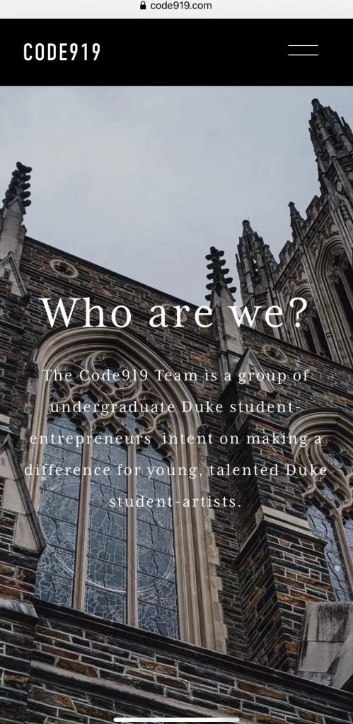 Entrepreneurship project CODE919 website